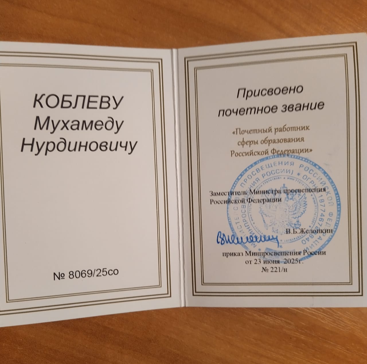 Особенным моментом церемонии стало вручение одной из самых престижных наград в сфере образования – удостоверения о присвоении звания «Почетный работник сферы образования Российской Федерации» директору МБУДО "Дома детского творчества" Коблеву М.Н.